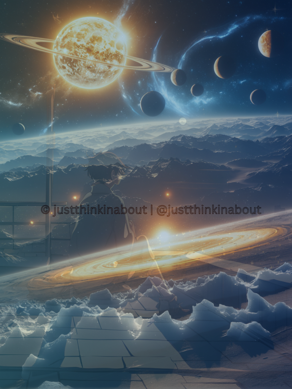 “Celestial Rapture” takes you across the stars into an awe-inspiring sci-fi vista. With planets, rings, and solar light, this wallpaper is a gateway to another dimension.
